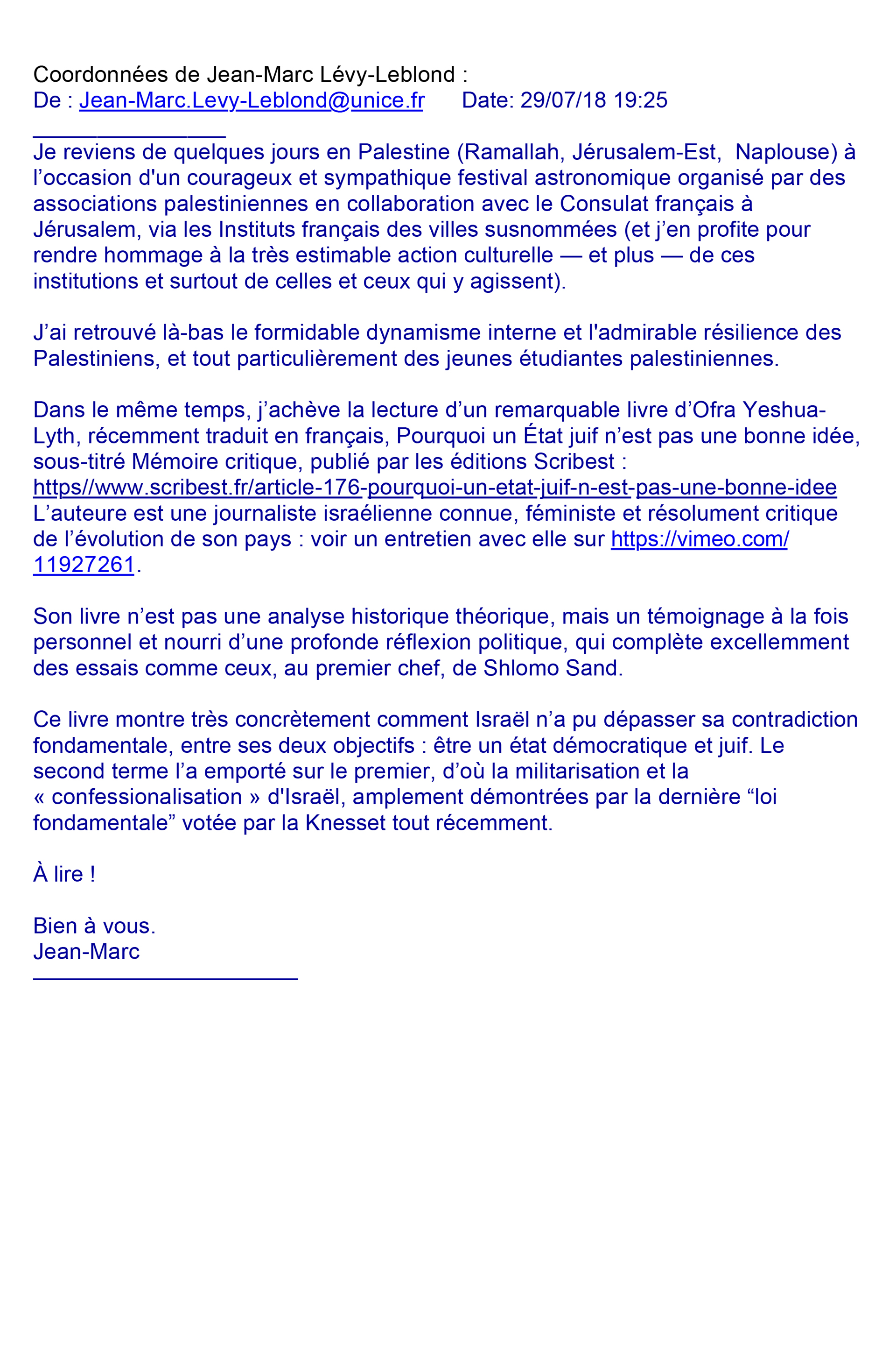 AFPS – Interview with Ofra Yeshua-Lyth (French)